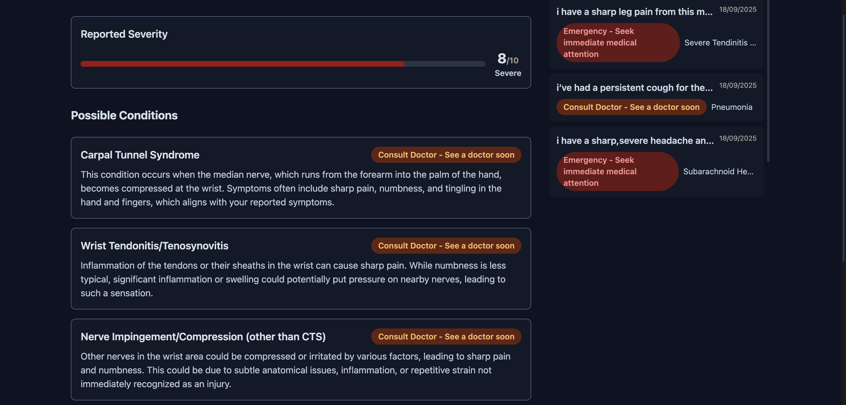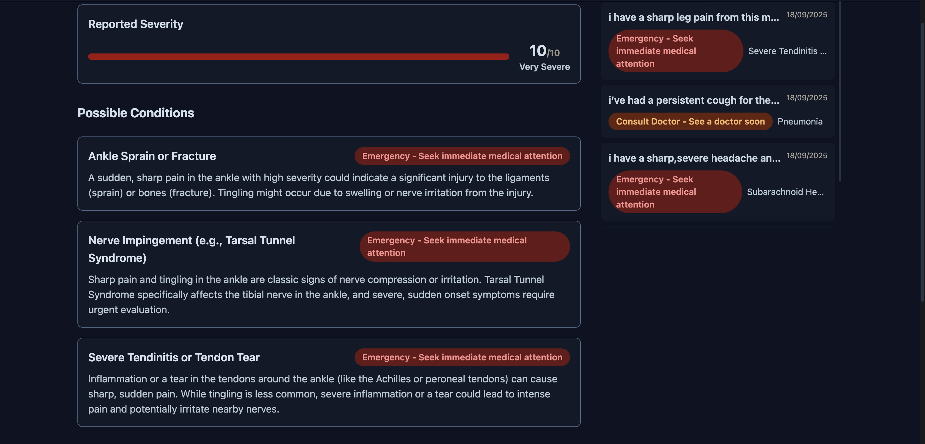 - 🔍 Intelligent Symptom Analysis: Advanced ML algorithms process and analyze user-reported symptoms